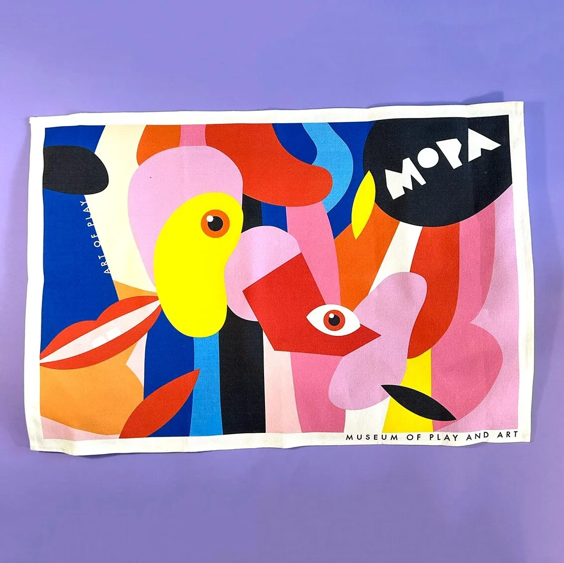 Add a splash of colour to your kitchen with our limited edition MoPA Tea Towel! Made with absorbent and durable fabric, this tea towel features a playful design inspired by the Museum of Play and Art. Whether you’re drying dishes, cleaning up spills, or simply adding a decorative touch to your space, this tea towel is as practical as it is charming. Let the spirit of creativity and fun brighten up your home with our delightful MoPA Tea Towel!